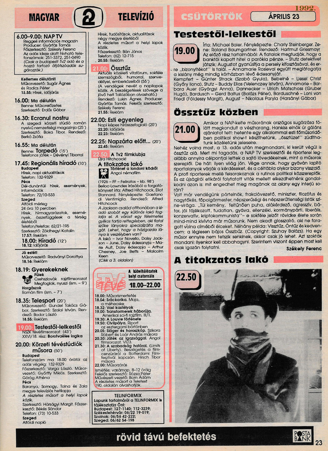 (MRT - rádió- és televízió újság, 1990-es évekbeli számaiból) [Vissza a Hitchcock kezdőoldalra!]